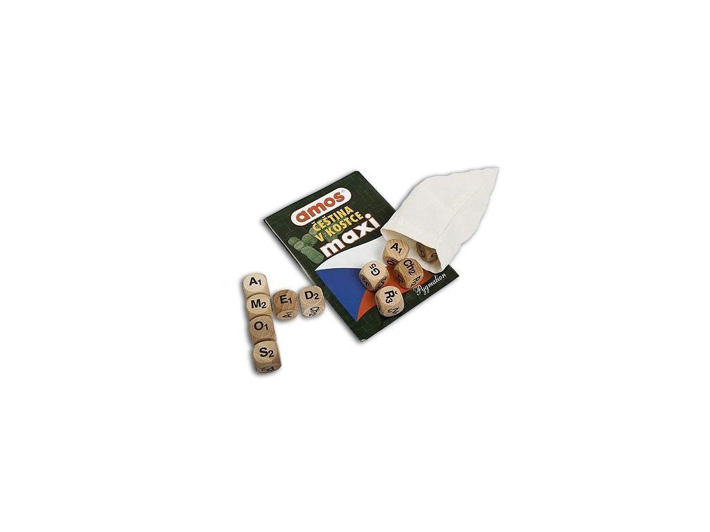 Čeština na v kostce z řady jazykových her AMOS pobaví i poučí. S přáteli nebo v rodinném kruhu zábavnou formou prověří znalost českého jazyka. Rozvíjí kombinační schopnosti a slovní zásobu. Tato varianta oblíbené jazykové hry z řady AMOS nabízí větší kostky s lépe čitelnými znaky.