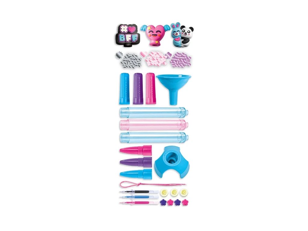 🌈 Více než 50 dekorací – třpytivé práškové barvy, bambulky, korálky, gumové figurky a další
