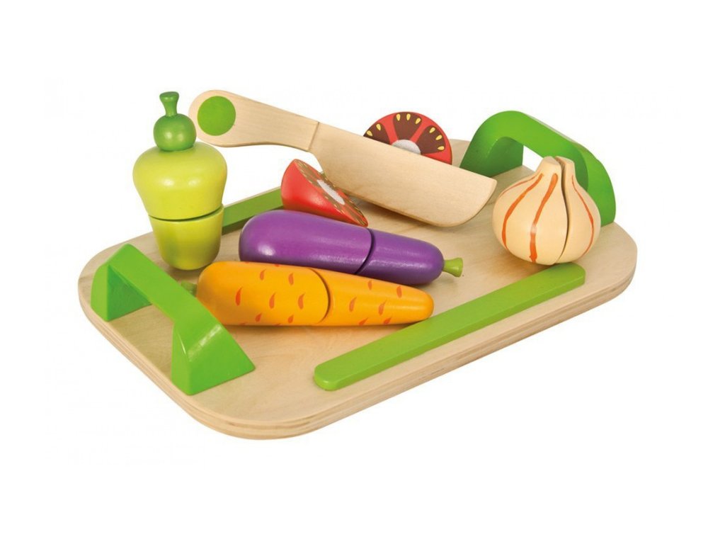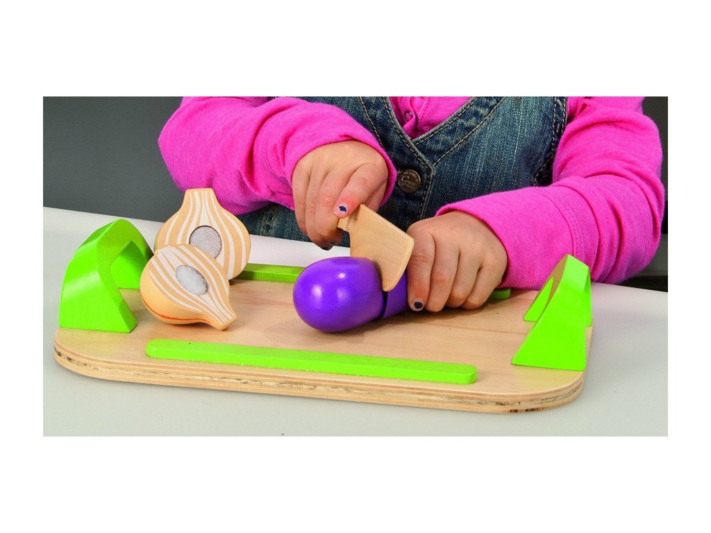 Dřevěná zelenina se spojuje suchým zipem, proto můžete stále znovu skládat rozkrájené kusy dohromady.