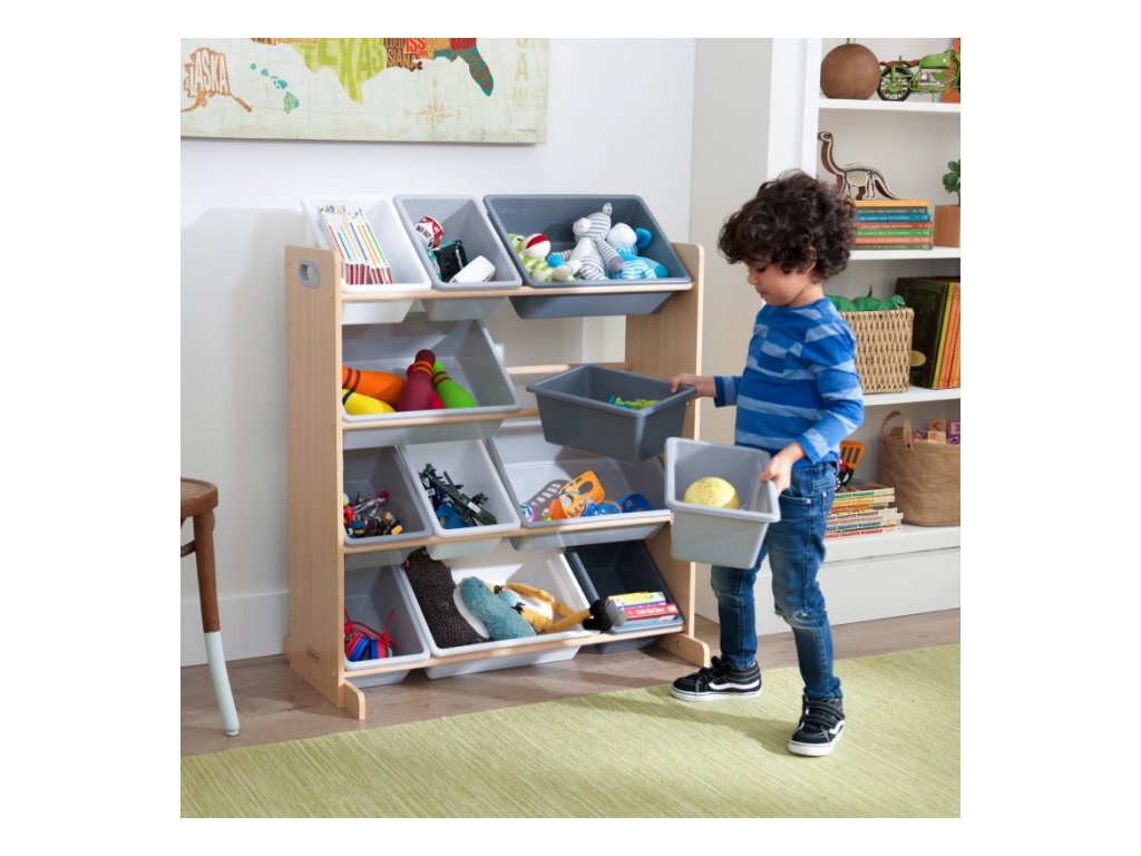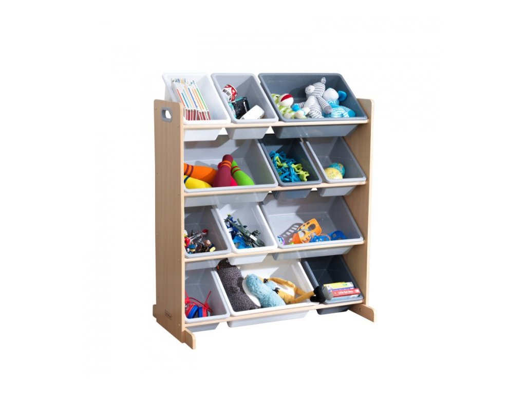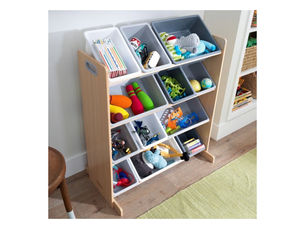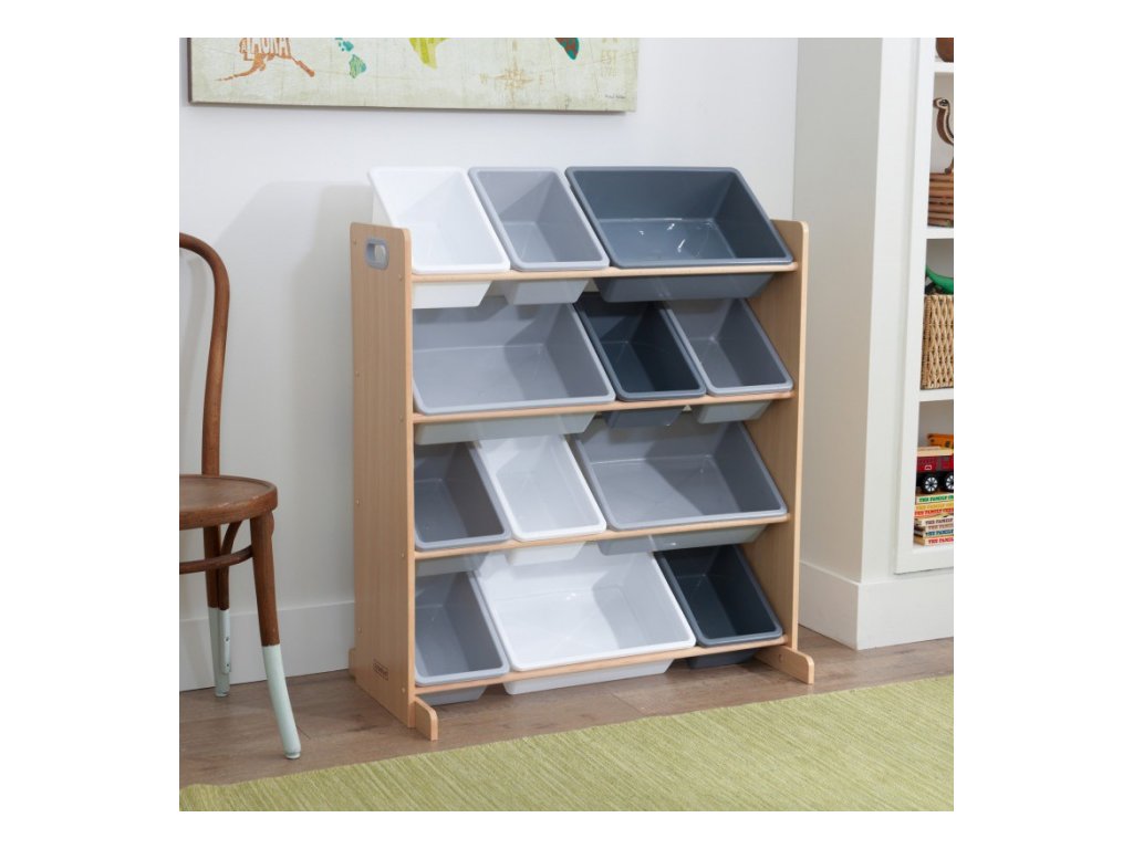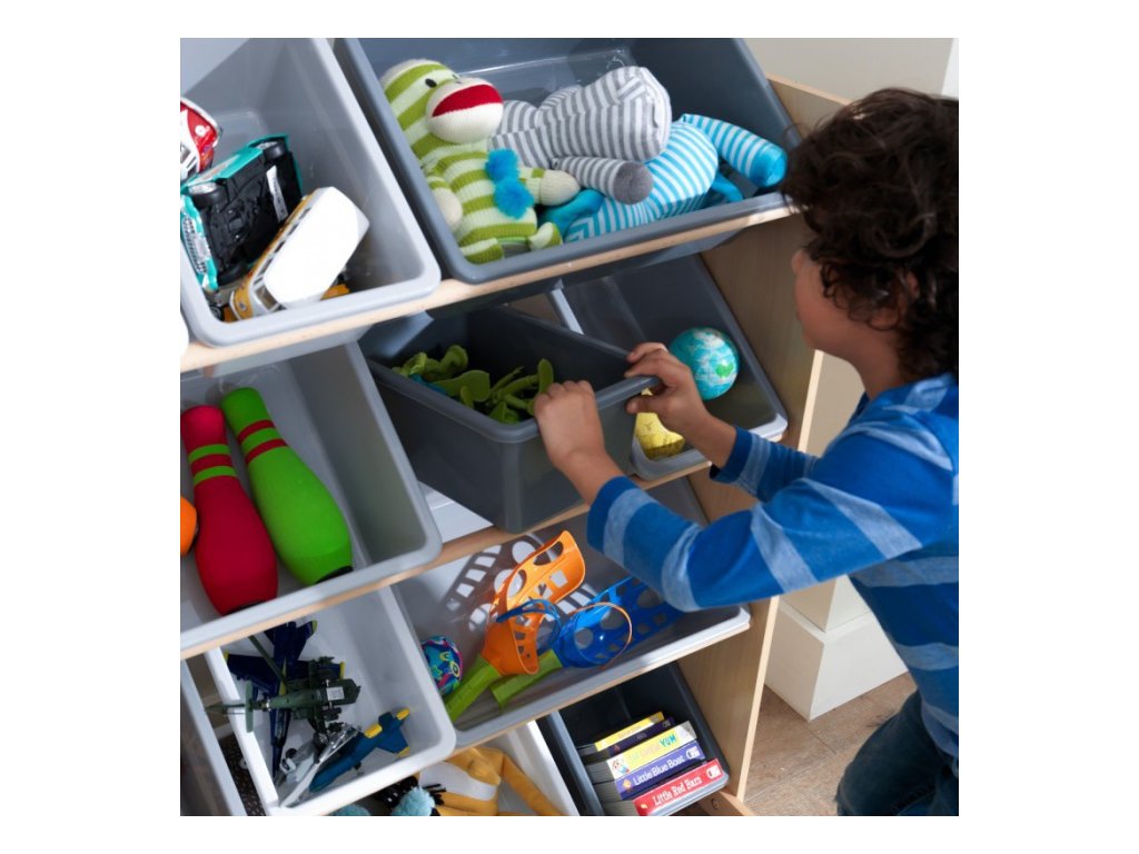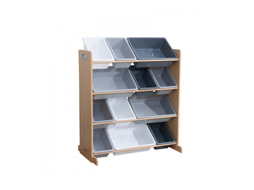 KidKraft 10041 Úložná police s 12 boxy - Šedá a přírodní barvy