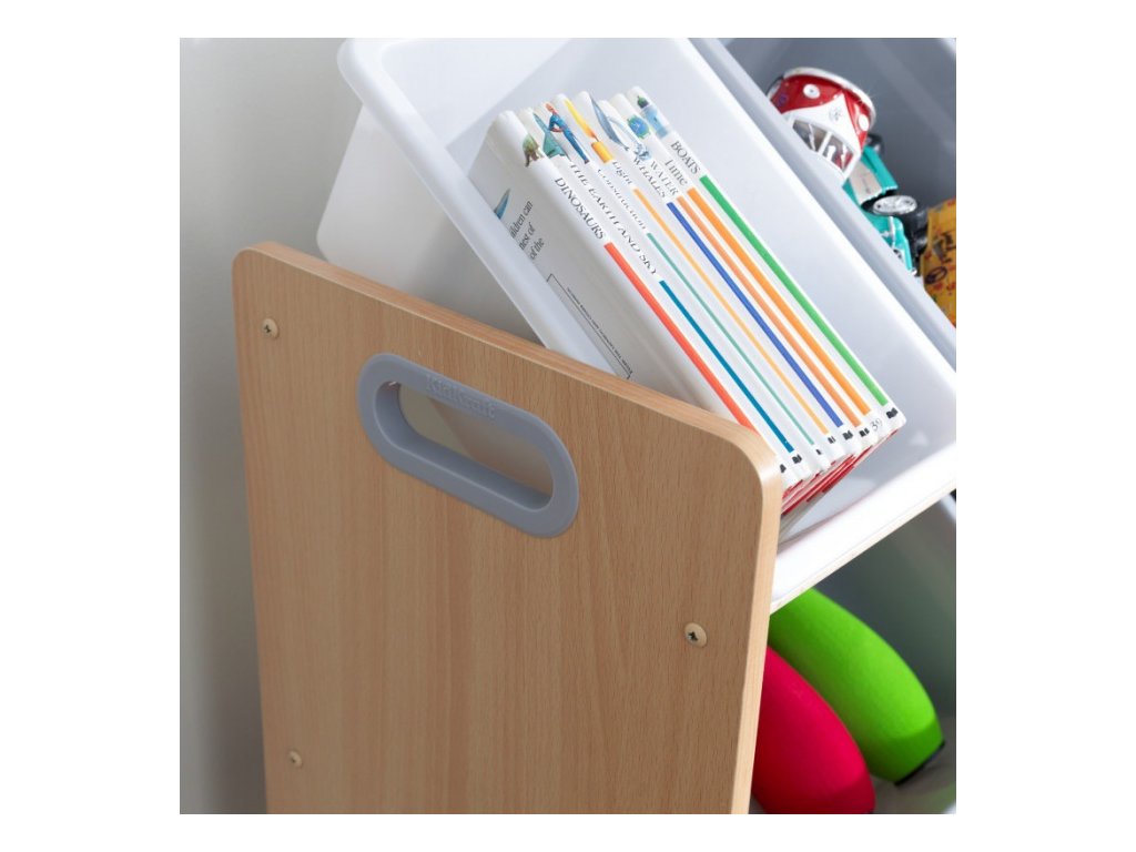 Rozlučte se s nepořádkem! Dřevěná polička Kidkraft 10041 obsahuje 12 plastových boxů, pro pohodlné uložení hraček, oblečení, sportovní vybavení atd. Koše jdou přenášet tam, kde si děti zrovna chtějí hrát. Koše jdou lehce umýt, jsou vzájemně zaměnitelné, takže si je můžete sestavit podle potřeby.