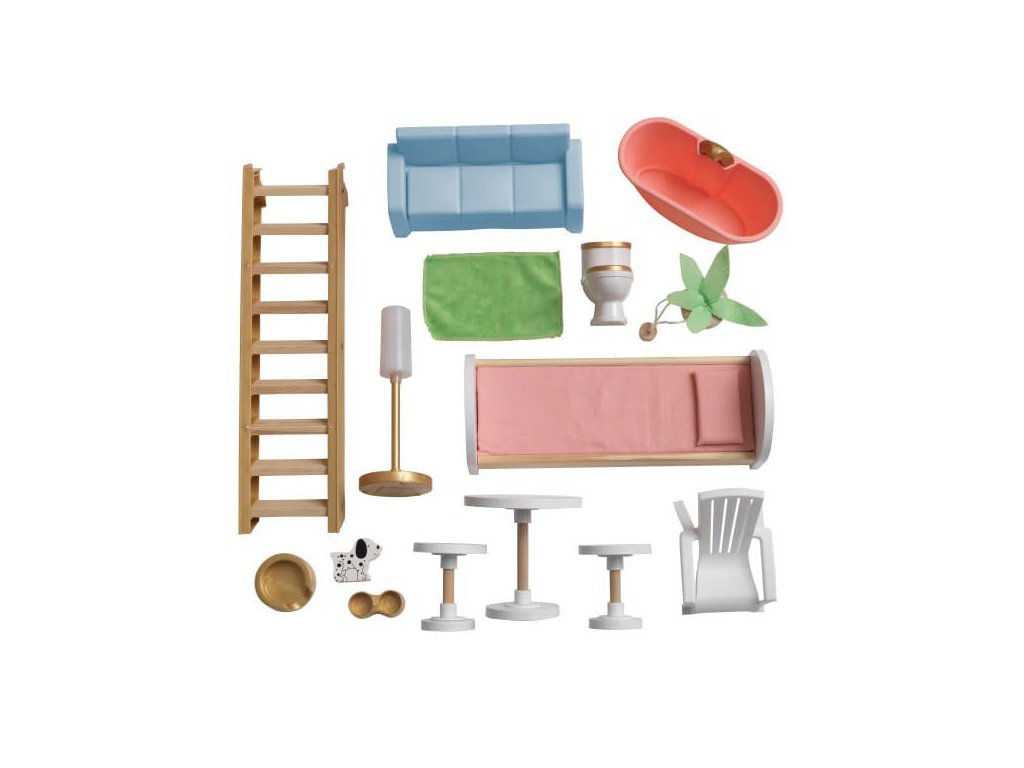 Součástí domečku je 15 kusů nábytku a příslušenství.