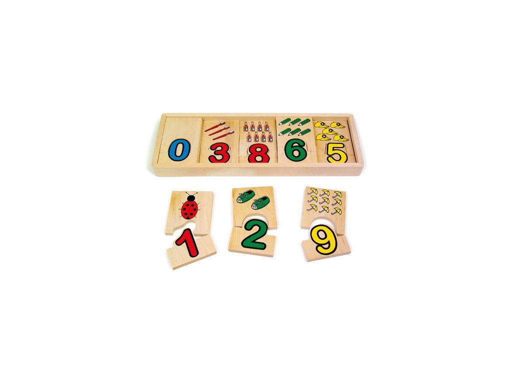 Pomocí barevných obrázků z každodenního života dítě procvičuje čísla.