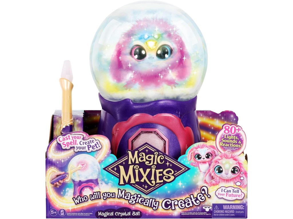 - Interaktivní plyšová hračka: Mixie reaguje na dotek, přináší přes 80 zvukových a světelných efektů a nabízí různé herní režimy – věštění, kouzlení, hry i lechtání.