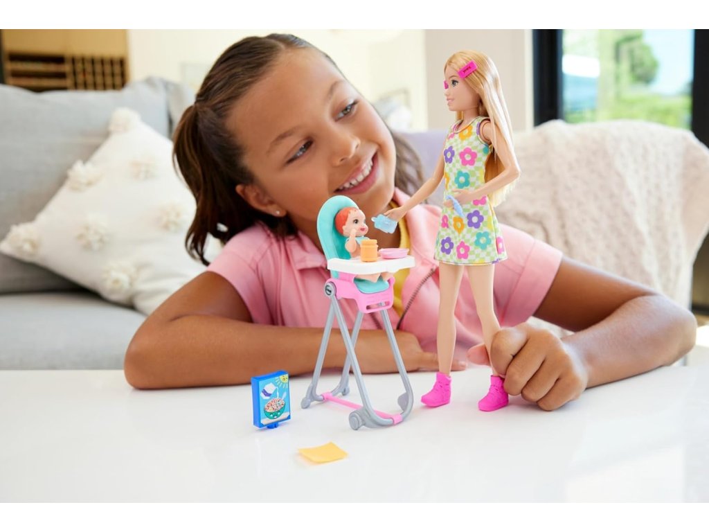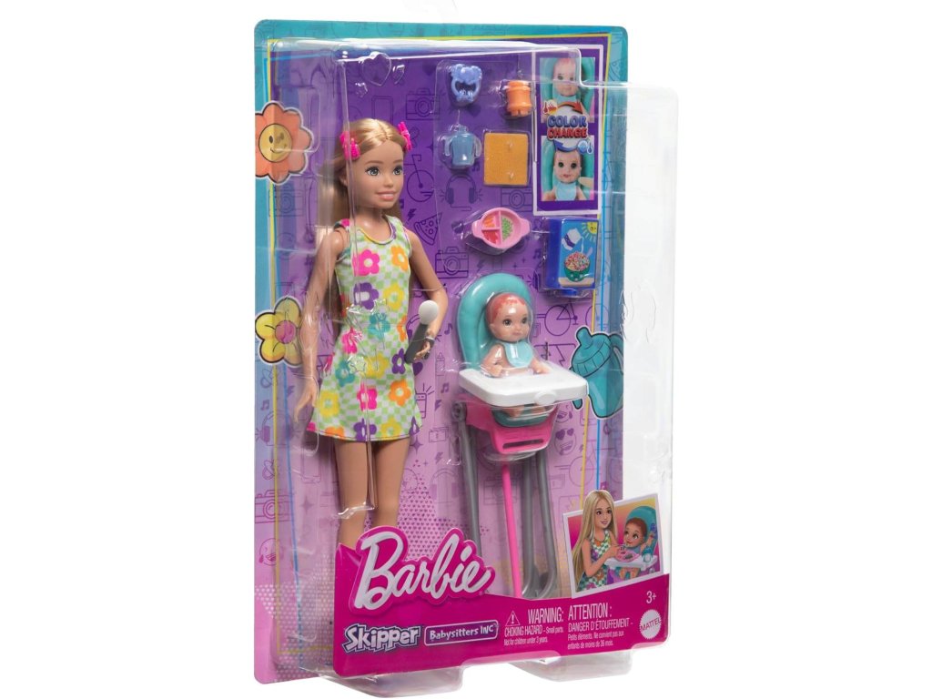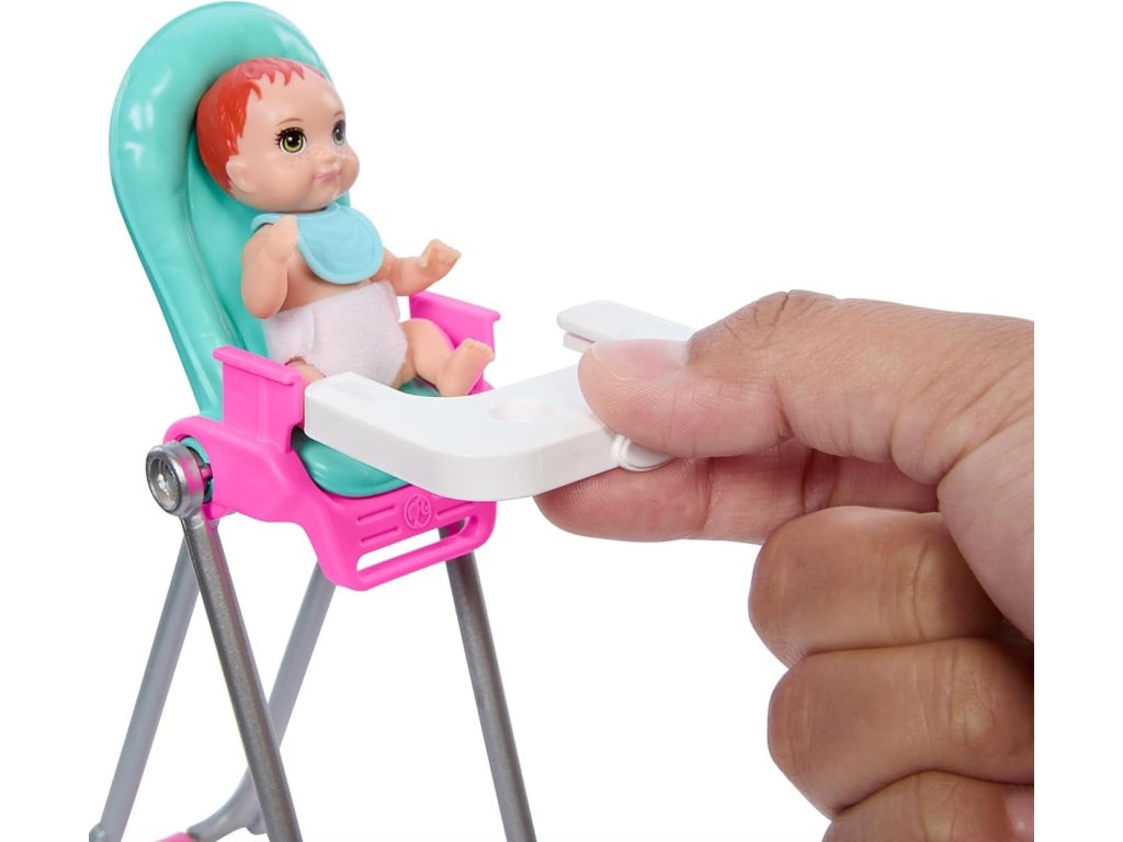 🍽️ Barbie Skipper Babysitters Inc. – Herní set s jídelní židličkou a miminkem (HTK35)