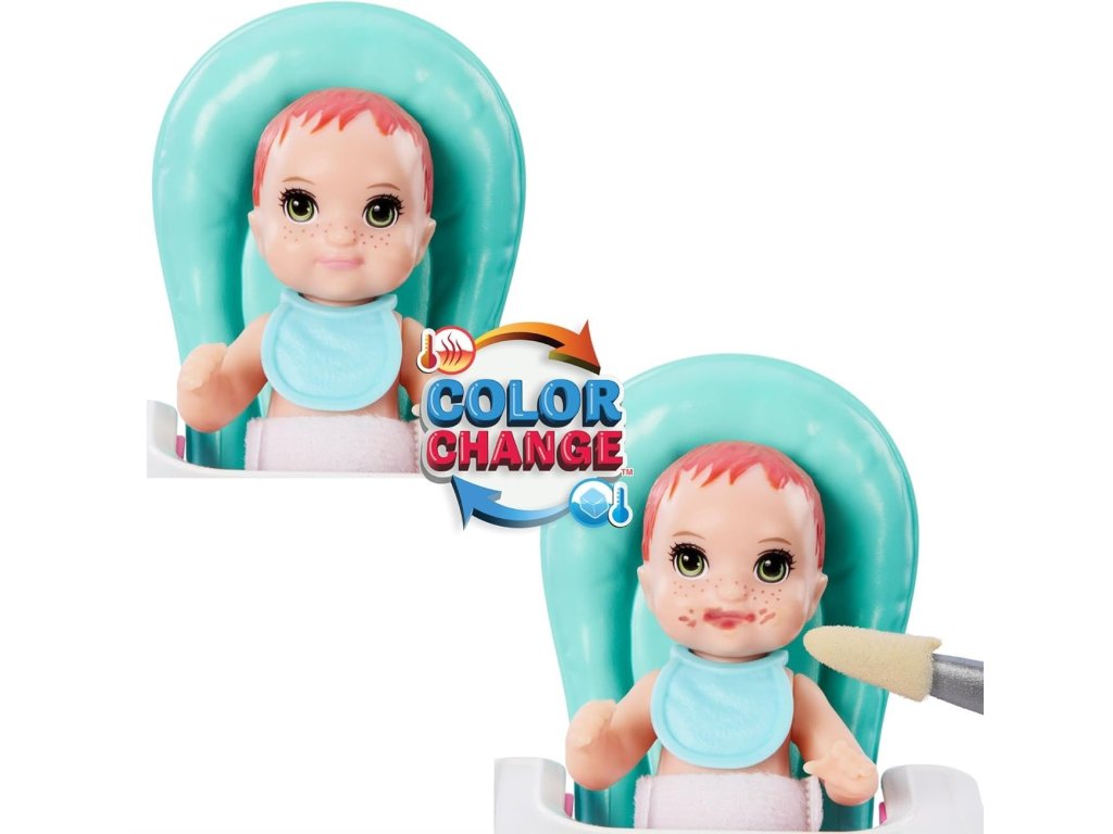 Pomoz panence Skipper s péčí o hladové miminko! Tento interaktivní herní set z řady Babysitters Inc. od Barbie nabízí dětem zábavnou a realistickou hru na chůvu. Díky funkci změny barvy na obličeji miminka při krmení je každé krmení zážitkem plným smíchu i péče.