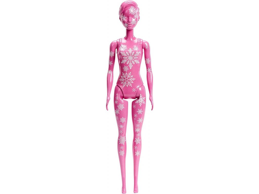 První den děti vybalí nádobu uprostřed kalendáře, odšroubují víko a vyndají panenku Barbie, která je od hlavy až k patě pokryta růžovým nátěrem Color Reveal a sněhovými vločkami