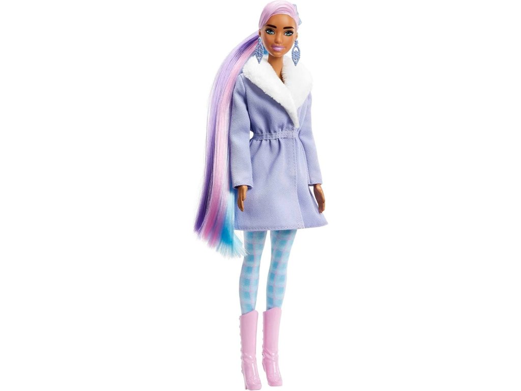 Děti mohou panenku Barbie oblékat a upravovat. Součástí dodávky je bunda s umělou kožešinou, šaty na party, legíny, sukně se vzorem sněhových vloček, 3 páry bot, 7 módních doplňků a 2 prodloužení vlasů pro panenku Barbie