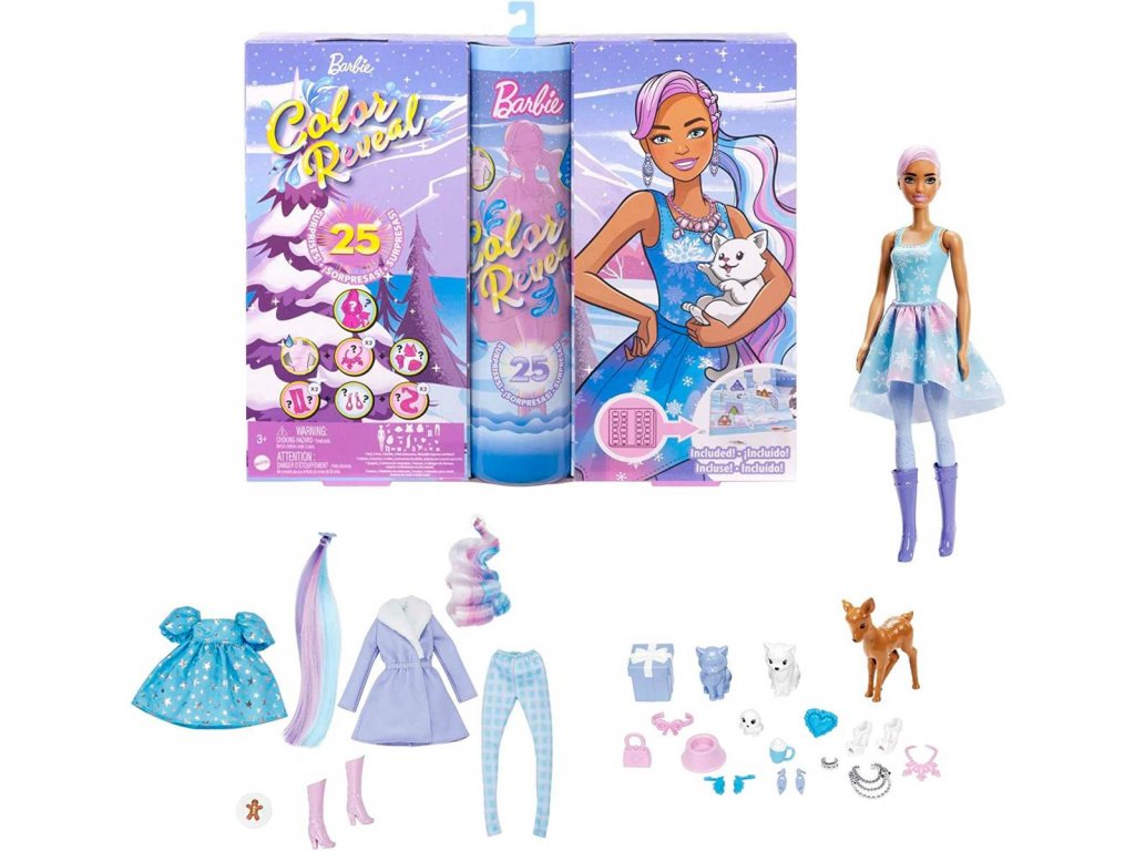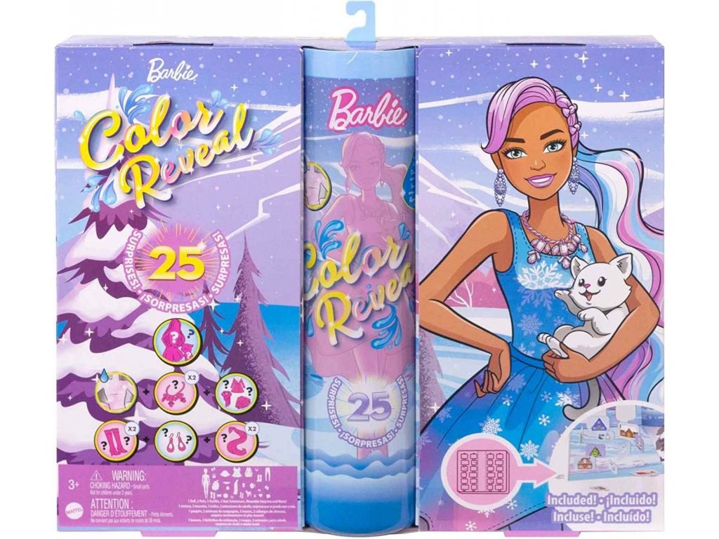 S adventním kalendářem Barbie Color Reveal plyne čas až do Vánoc jako v letu. V originálním Color Reveal inovačním kalendáři se nachází 25 překvapení pro každý den, mezi nimi panenka Color Reveal Barbie
