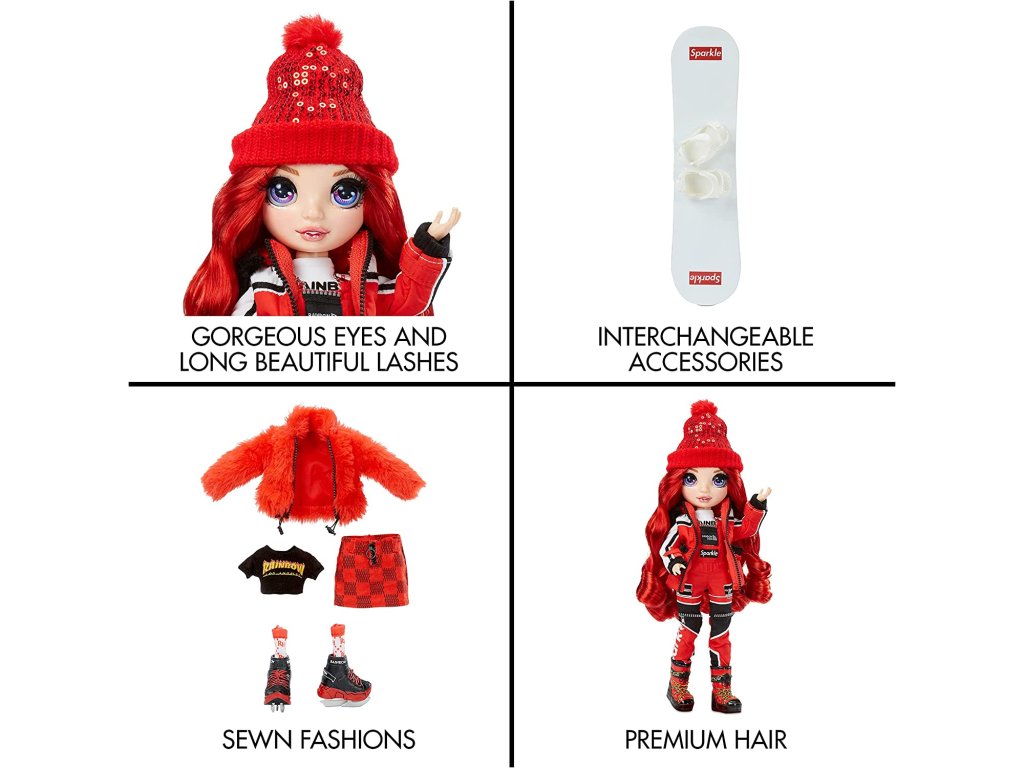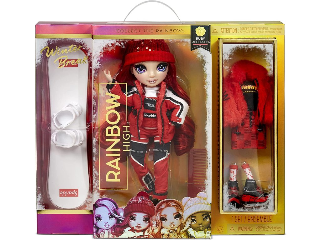 Sada obsahuje: panenku, kompletní oblečky, bruslařské boty, chrániče na uši, boty na snowboard, snowboard s funkčním vázáním. Nasbírejte všech 6 módních panenek Winter Break: Ruby Anderson, Poppy Rowan, Sunny Madison, Jade Hunter, Skyler Bradshaw +amp; Violet Willow.