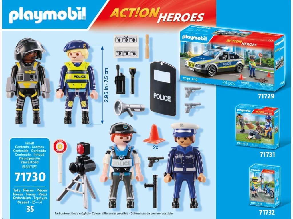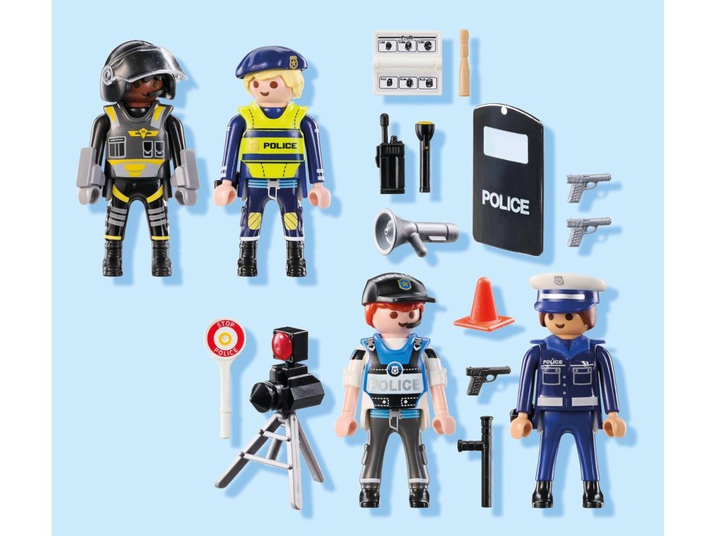 Vydejte se do akce a chraňte město! S touto sadou policejních figurek PLAYMOBIL se děti mohou pustit do napínavých misí, řešit dopravní přestupky, vést forenzní vyšetřování nebo koordinovat zásahy jako velitelé operací. Každá hra přináší nový příběh a prostor pro fantazii.