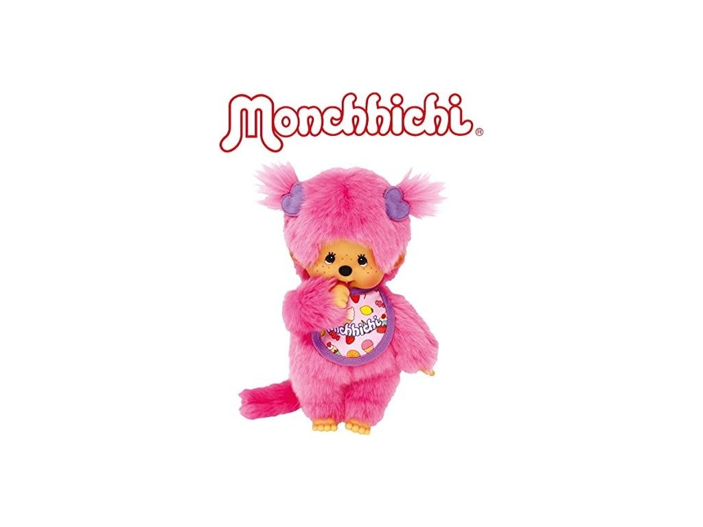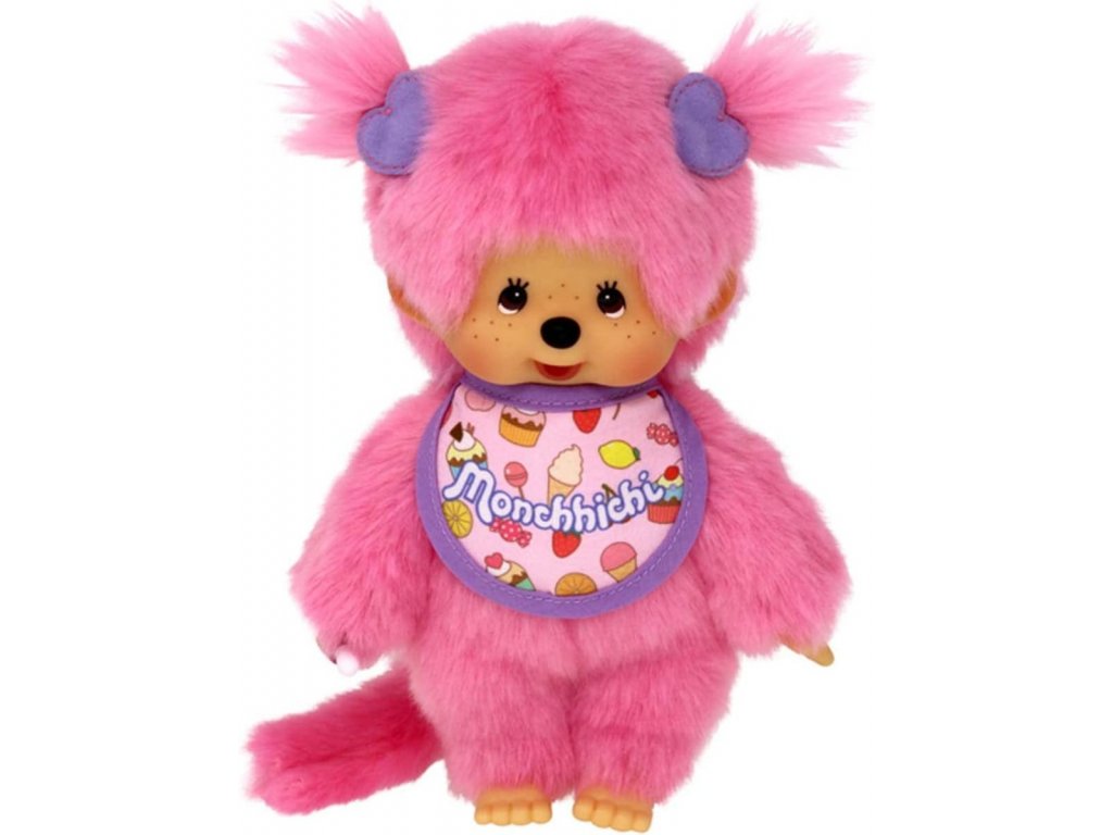 Klasický plyšák Monchhichi 20 cm s s bryndáčkem.