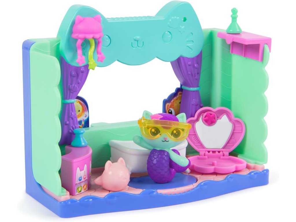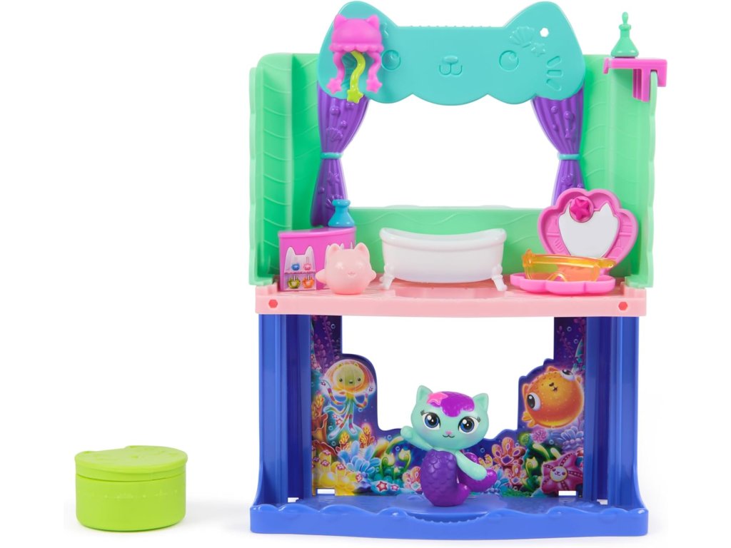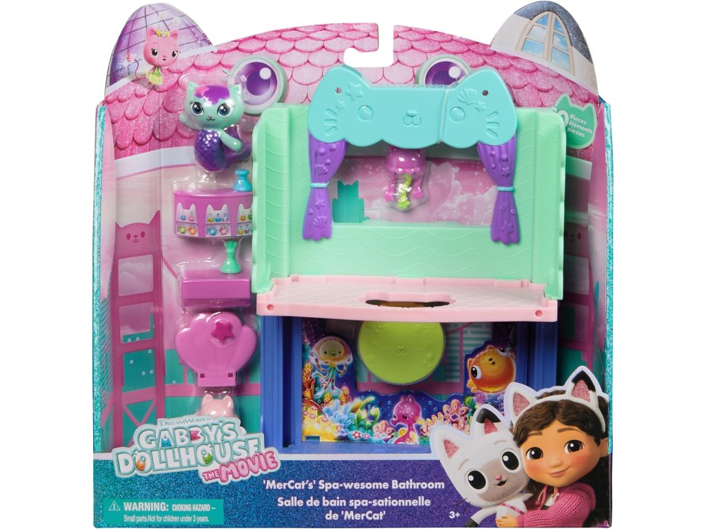- Koupelna je navržena tak, aby se dala připojit k domečku, a promění se v dvoupatrovou místnost, která rozšiřuje svět Gábinina kouzelného domku o ještě víc napětí a zábavy – navíc s překvapivou funkcí!