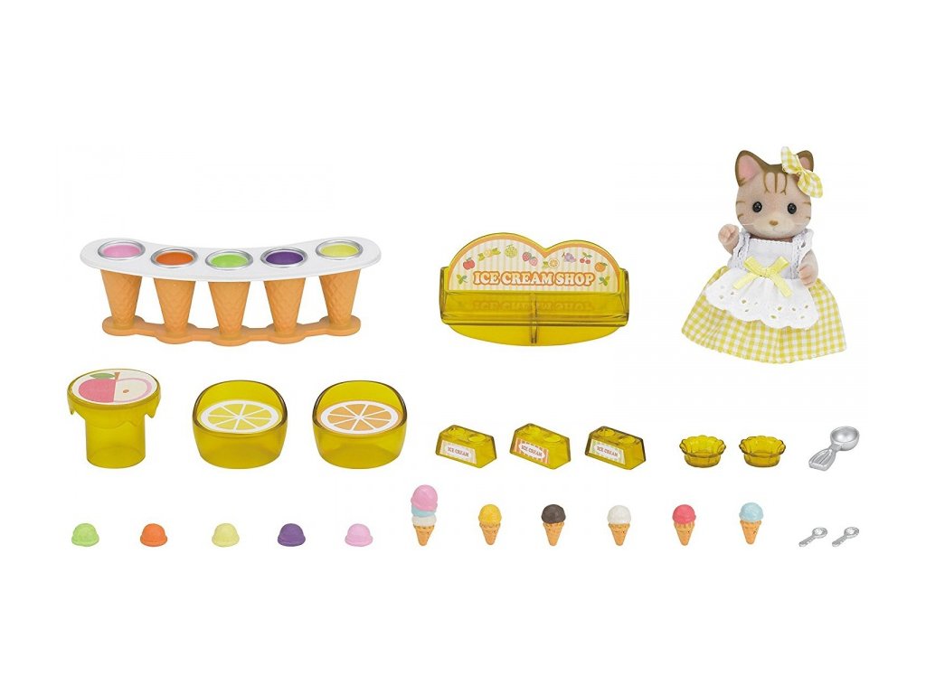 Zmrzlinárna, která stojí přímo u pláže, osvěží všechny mlsouny ze Sylvanian vesničky. Maminka proužkovaých kočiček vás ve své zástěrce ráda obslouží. Zmrzlinová restaurace může být také umístěna na střeše rybí restauraci a jiných budov.