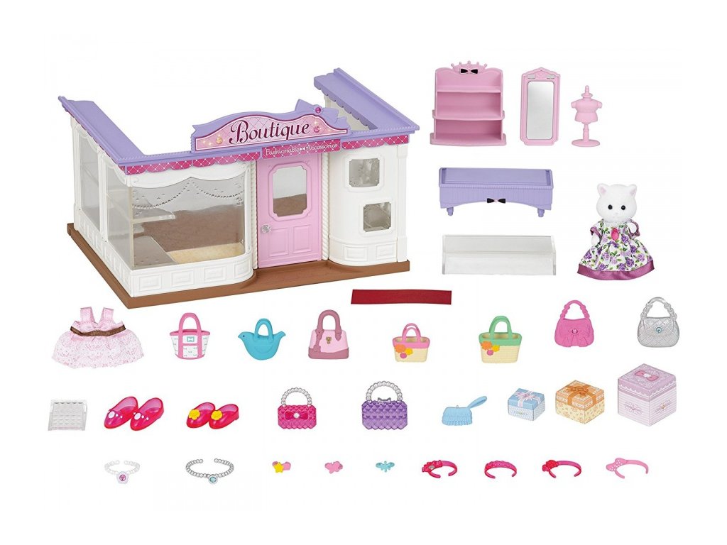 Sada obsahuje: regály, pult, zrcadlo, poličky v jemných odstínech oblíbené růžové a fialové barvy. Dále šaty, boty, kabelky, náhrdelníky, prstýnky nebo ozdoby do vlasů. Rozměry balení: 39 x 19 x 19 cm