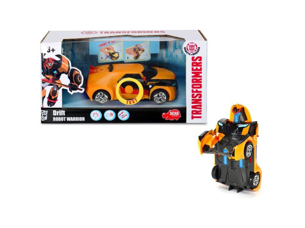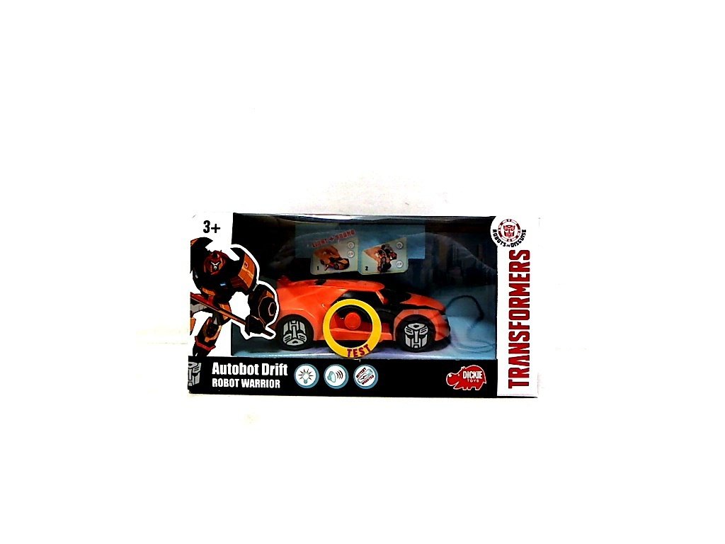 Autobot na volnoběh, transformuje se z auta na robota. Světelný efekt, zvuk túrování motoru či řinčení boje. Velikost 15 cm. Barva oranžová.