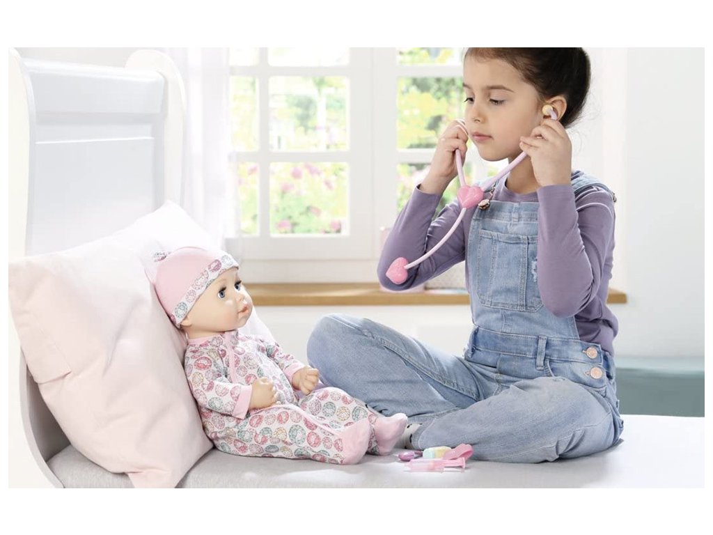 - Součástí dodávky je Baby Annabell Milly Feels Better s dupačkou a čepicí, stetoskopem, klinickým teploměrem, lékovkou, lékovými lahvičkami a stříkačkou.